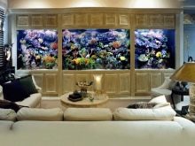 When choosing your option, you can build on the color scheme of the room in which the aquarium is located. For example, a lively background will look great in rooms where only neutral colors are contrasts. Juicy greens will dilute the contrast of white and gray, white and black. This design can become an expressive accent of the interior, endowing it with the necessary emotional coloring.