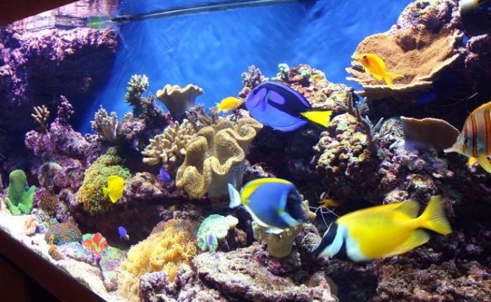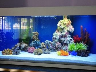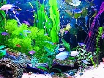 Looking at such an aquarium creates a sense of tranquility and peace of mind. The effect of aquamarine color allows you to create the illusion of medium depths. These tones can distract attention from the saturated greens found in the aquarium.