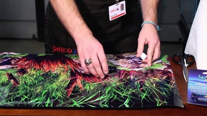 The fastening of the chosen option depends on its variety. For example, if it is a film, it can be glued both inside the aquarium and outside. For gluing inside you have to use a special sealant. In no case should you fix the sheet along the edges with tape without using glue. Very quickly, such a design will become sloppy. Between the film and glass, water will get, the adhesive tape will come off.