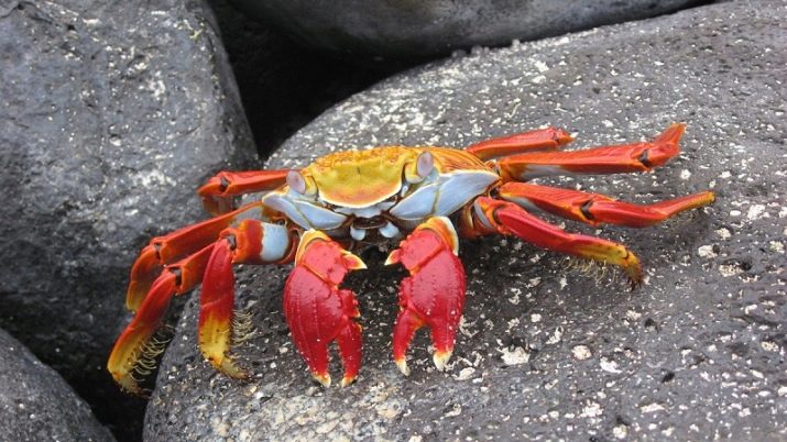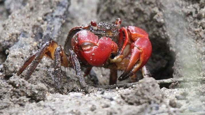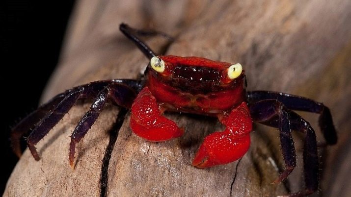 The specific color of the body of the crab influenced its name. Someone will say that he looks intimidating, someone will argue and call the red devil a real handsome man. The limbs, sides and muzzle of the crab are black, and the head, claws and spots on the shell are bright red.