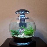 Lighting a round aquarium is one of the problems of its design. You cannot use a conventional lamp because of its rather large dimensions, and the use of a table lamp, although convenient, is not always aesthetically pleasing.