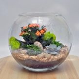 There is such a solution as a sphere in which not only there are no inhabitants, but also water. In this case, decorative stones are performed by colored pebbles and artificial plants. Often in such containers place an ordinary indoor plant. Such a decorative element of the interior, of course, cannot be called a full-fledged aquarium. In the second half of the 20th century, round ponds with colored stones instead of soil, completely devoid of vegetation, with one brightly colored fish, also performing purely decorative functions, began to be installed in modern interiors.