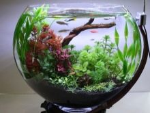 As you can see, the arguments against the round aquarium are related to the creation of acceptable conditions for its inhabitants. It follows that such an aquarium is completely unsuitable for a beginner. It is better for a novice aquarist to master a rectangular pond with a volume of at least 40 liters. This will avoid many disappointments and even small tragedies. A round aquarium is better to make it decorative, without any claims to imitate the natural habitat. The main attention should be focused on the aesthetics and harmony of the aquarium as an element of the interior.
