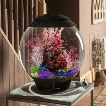 The equipment of a round aquarium is much more complicated in comparison with a classic rectangular pond. It is more difficult to equip it due to the convex shape of the walls and the relatively small bottom area. Conventional equipment will be difficult to disguise, this will lead to an even greater reduction in volume. Special equipment for a round aquarium is much more difficult to find in pet stores. However, this is perhaps the only way to properly arrange the sphere if it is planned to contain fish or living plants.