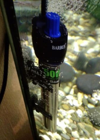 - Barbus Heater 009 50 W. Immersion heater. The casing is made of high quality metal and has double insulation of the heating elements. The device is equipped with an accurate temperature controller and a dial. Power devices - from 50 to 300 watts. 50 W models, which belong to the new generation of equipment, are in great demand. The device is mounted near a stream of water and does not come into contact with the ground.