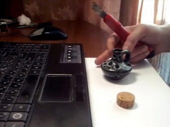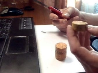 - Then in the center of the cork you need to make a small hole. To do this, you can use the thinnest drill or thickest needle.