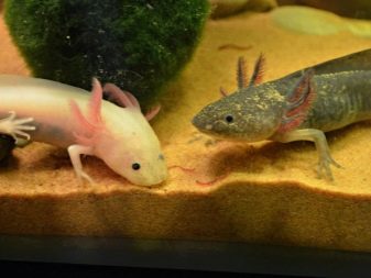 Salamander larvae are preferably kept in a separate container, all of which should be the same size. Fish and snails will not get along with the monster, as he prefers to eat his neighbors without any sentiment. But large fish, which are too tough for axolotl, will also not be good neighbors of amphibians - because of its bright color, he himself may become a victim. For some reason, fish are decided to attack the gills of the axolotl. If the damage is minor, the body regenerates it. But major injuries become irreversible for the salamander.