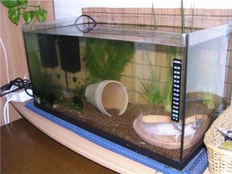 If the larva is young and small, then it will fit in a small aquarium of 50 l, but adults will no longer be able to fully exist in such cramped conditions. The minimum tank volume for one or two of these monsters is 100 liters.
