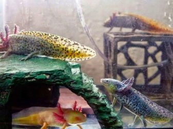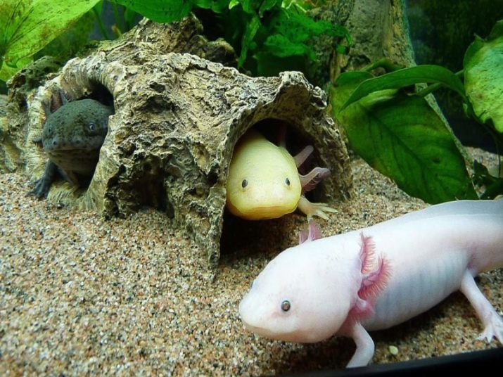 The monster is active at night, so there should be no shortage of dark nooks and crannies in the aquarium, where during the day the animals would hide from intrusive light. This can be a slide with large pebbles or a coconut shell, or even a clay pot with a hole so that the axolotl can hide in a pot - these are common options for such shelters.