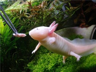 In the aquarium, axolotl is fed:
