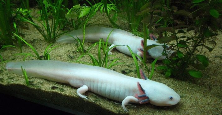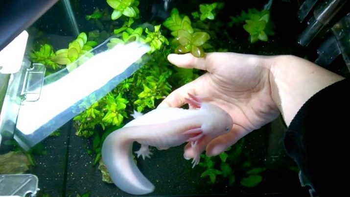 - You should dim the light in the aquarium, since both the usual axolotl and albino do not need the lighting that the fish are used to. You need to turn on the lamp less often, since the heat emanating from it can harm amphibians.