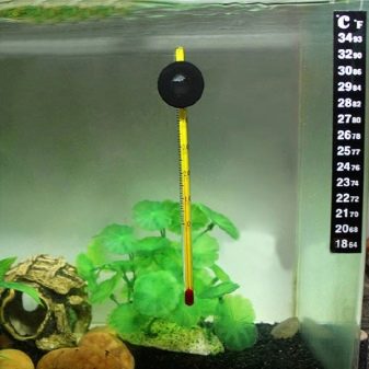 In addition, certain rules for the placement of thermometers must be observed so that their readings are correct. For example, they must be placed on the opposite wall from the heater or lamp. Liquid immersion thermometers need to be fixed to the inside of the aquarium wall in the middle layer of water. Many types of aquarium heaters have a built-in instrument for measuring temperature fluctuations. But this data can be with a large error. therefore the presence of an autonomous thermometer is a necessary tool for monitoring the temperature regime.