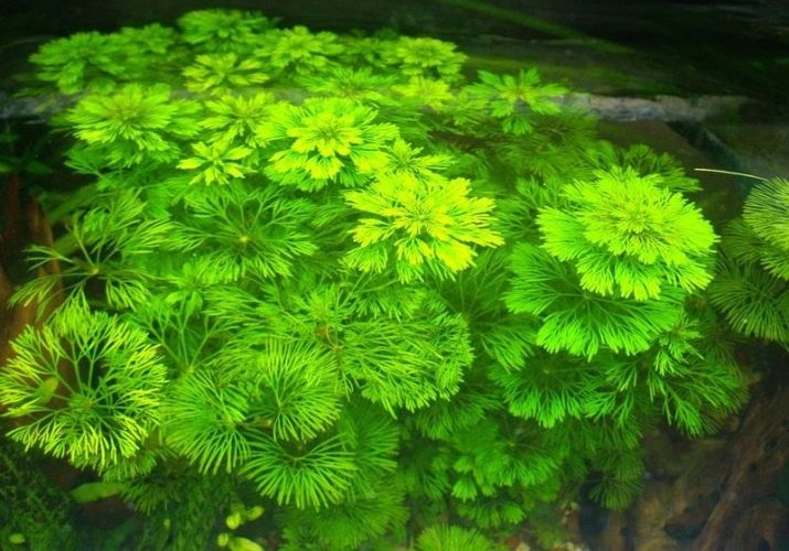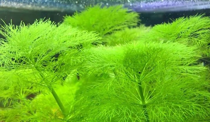 The spherical top of the plant with curly curls of greenery is large and forms a circle of 12 cm. In addition to its magnificent decorative appearance, it has a beneficial effect on the microenvironment of the aquarium due to the filtering function.