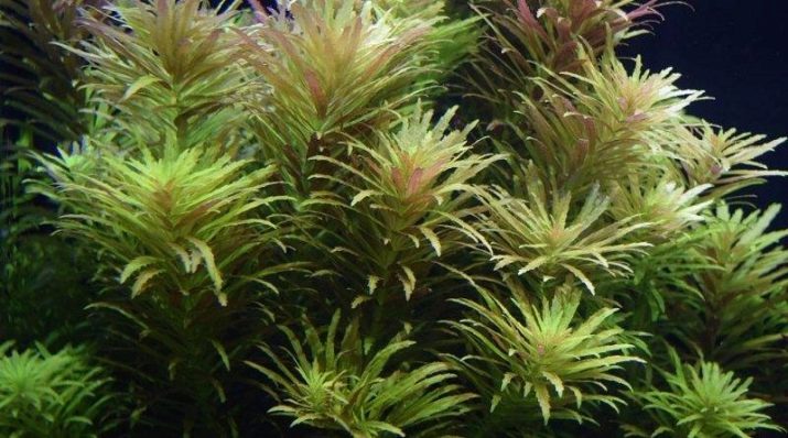 The plant is also called dwarf ambulia. The grass has a straight and tall stalk with reddish and green leaves resembling feathers. When it grows to the surface, a large number of young twigs depart from it, densely streaming the expanse of water. Thus, the plant can grow both under water and above it. With good care, limnophile forms beautiful white flowers. Dimensions of an adult plant: width - from 4 to 7 cm, height - from 15 to 40 cm.