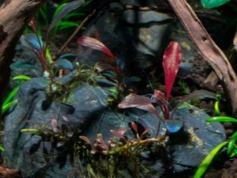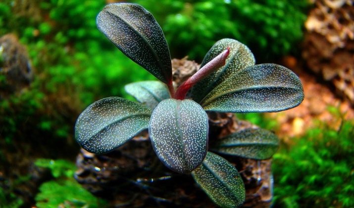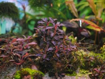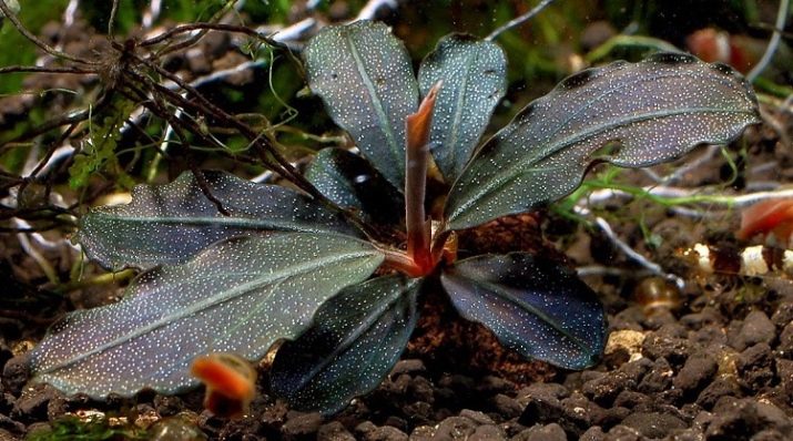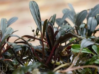 This species is also difficult to access, but for aquarists it is extremely valuable. It is famous for its beautiful reddish tint, which blends very harmoniously into the design of the aquarium. The length of the sheet plate is 1-3 cm. This view is a bit more difficult to care for than the option described above. The optimum temperature limits are 22–28 degrees, the acidity of water is 6–8.