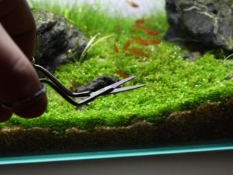 If cichlids, barbs and snails live in your artificial reservoir, it is better to get other green inhabitants, and a separate aquarium should be allocated to the hematanthus whose inhabitants do not belong to herbivorous creatures.