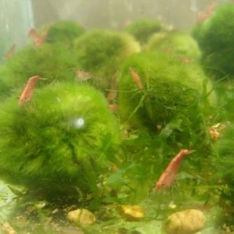 Kladofora is not only a natural filter for the aquarium, but also a source of nutrients for aquarium inhabitants.For example, shrimps like to feast on this seaweed, therefore they are often grown in small quantities in one container with the presented culture. You can place the ball in the caddy with fry: ciliates accumulate on the fibers, which can become a complete food for the cubs.