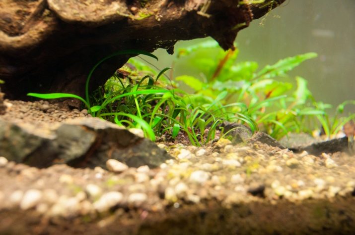 - The bush is planted in the soil, sprinkled with decorative pebbles and transferred to the aquarium. Water should be poured so that it is 4 cm above the ground. The soil should also be heated with a bottom heater.