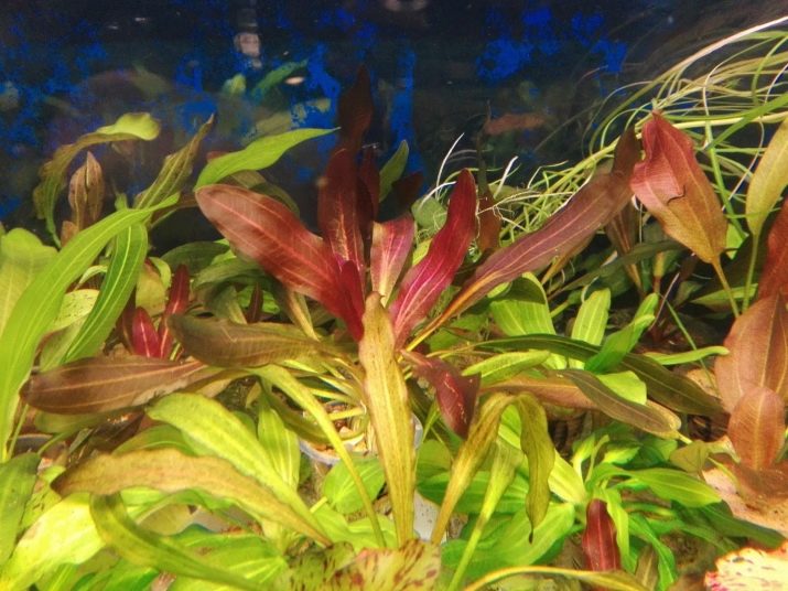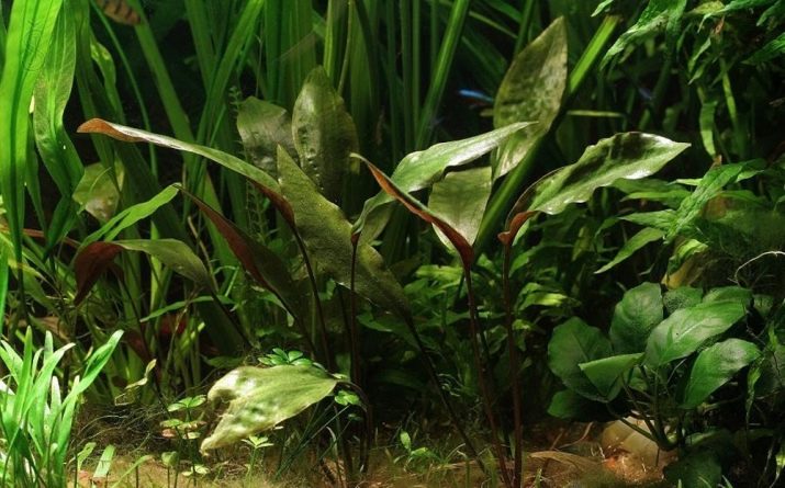 To create an aquarium with high vegetation, varieties such as aponohetonolate, affinis, heart-shaped.
