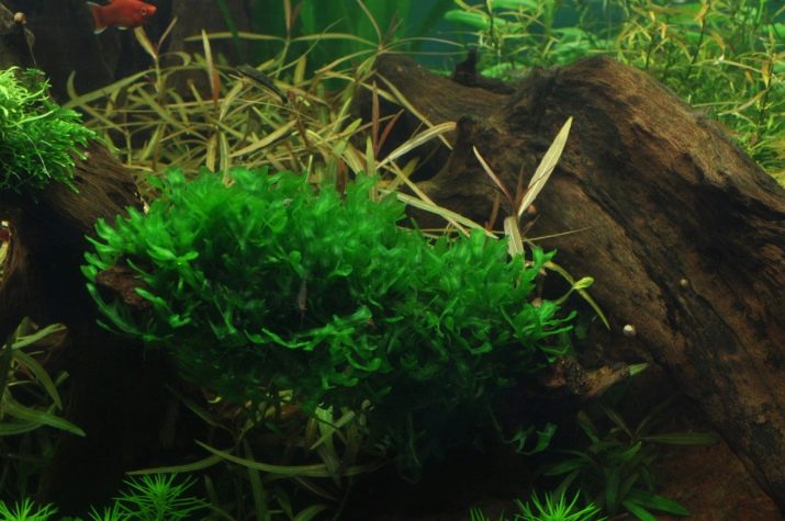 Experts say that the plant is well compatible with various species of fish, plants and shellfish. Such a moss "gets along" perfectly with: