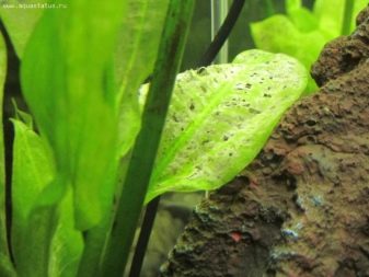 In order for the plants to fully grow and develop in the water, they need oxygen and a little carbon dioxide. In addition, algae need nitrogen, which they use to form protein compounds. Potassium is also needed. - He is responsible for photosynthesis, and its lack leads to stunting and protein deficiency. All this causes a discoloration of algae and other aquatic plants. If your pets do not have enough iron, then whitish spots will appear on the surface of the leaf plates.