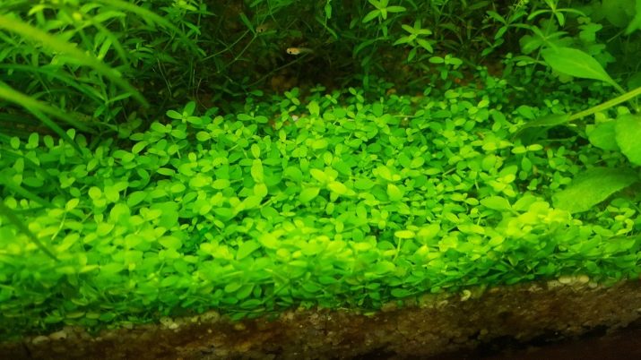 - Micrantemum "Monte Carlo" characterized by the presence of long roots, which are able to grow into the soil without floating to the surface. The diameter of the foliage of this plant is about 3 millimeters. Planting this specimen in an aquarium is a guarantee of the natural look of the ecosystem. Micrantentemum does not require intensive lighting and a high concentration of fertilizers. In the growth phase, the plant forms a dense rug, which is able to take root on a stone or snag.