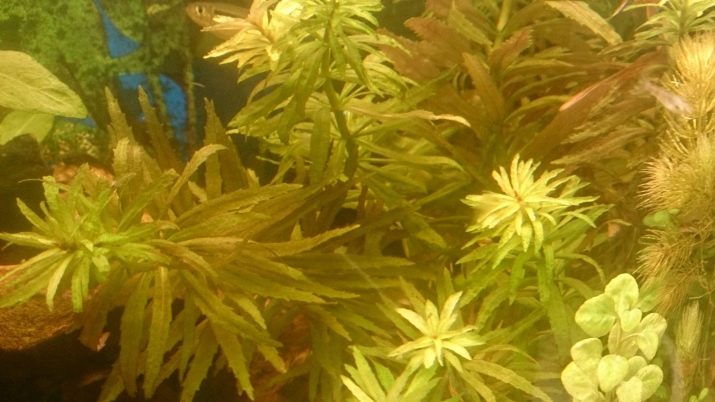 - Limnophila. It is usually recommended to grow novice aquarists. This is an unpretentious and very beautiful representative of the flora. Fluffy branches of lymphonils have some similarities with openwork balls, which are painted in a juicy green color. The grass is characterized by a long erect stem. Sedentiflower lymphonyl can exist at temperatures from 18 to 30 degrees above zero and water hardness from 6 to 12.