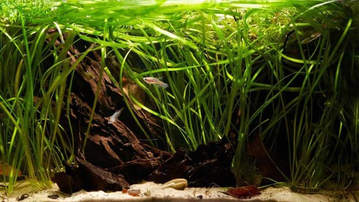 - Giant wallisneria. This is a large species of algae, which should be kept exclusively in a large aquarium. Planting should be carried out near the back wall. Vallisneria is characterized by a rich dark green color.