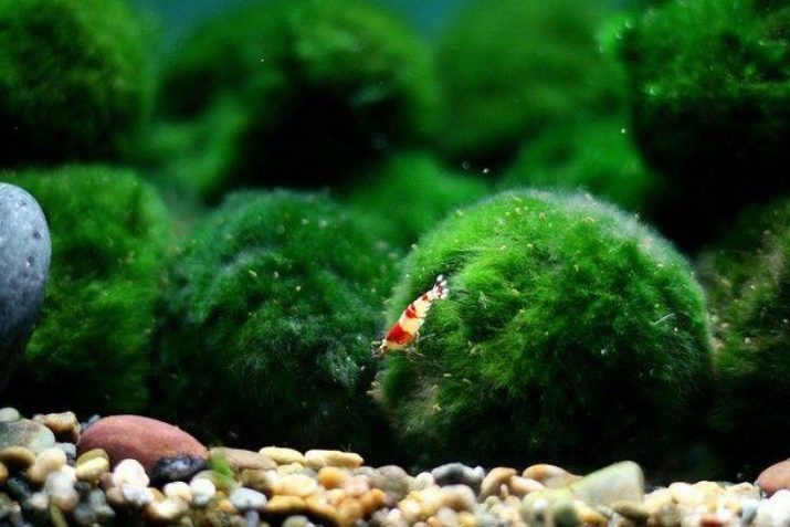 - Spherical cladophore is a decorative representative of a freshwater aquarium. The structure of the plant is composed of green filamentous algae that intertwine and form into a dense ball. In an artificial ecosystem, a plant can grow up to 6 centimeters. In an aquarium, the cladophore should be placed at the bottom, where in the morning it releases O2. Contain algae is in cool water with a temperature of about +20 degrees.