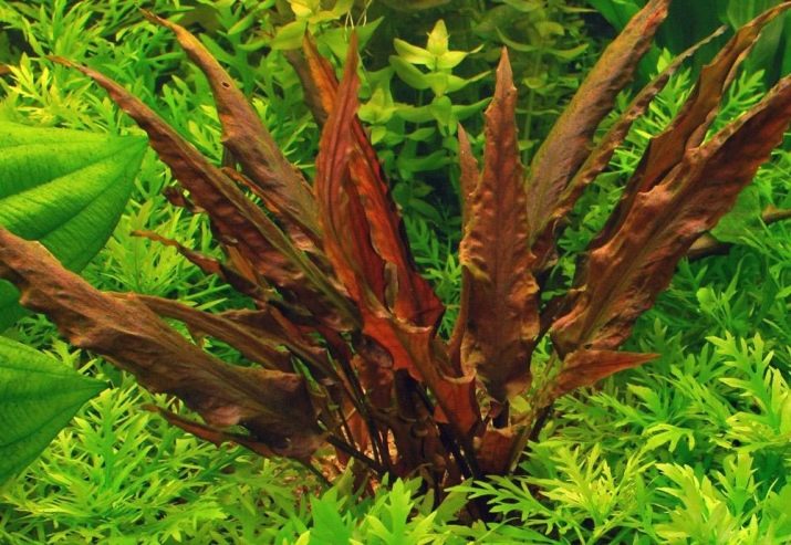 A successful acquisition will be a small cryptocoryne (Cryptocoryne), a fairly popular plant among aquarists, olive shade with a reddish inside, height - up to 12 cm.