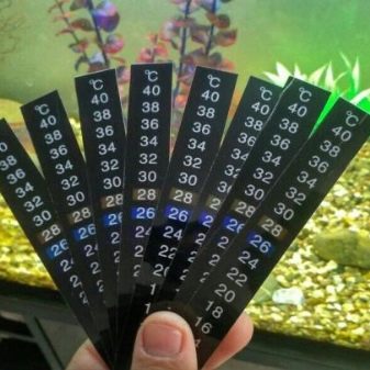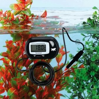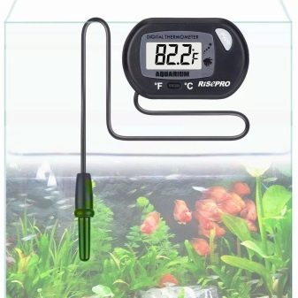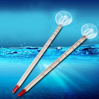 To constantly monitor the temperature of the water in the aquarium, you should use special thermometers. Typically, such a measuring device is installed in the middle layer of water and in a clearly visible place, preferably on the wall opposite from the heater. These devices are of two types: