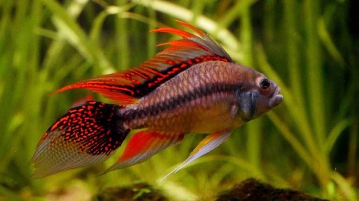 In most cases, people purchase home aquariums to observe the life and habits of underwater inhabitants, to relax after a hard day by contemplating the smooth movements of fish. Therefore, it is unlikely that someone will want to get a dull, uninteresting inhabitant, merging in color with the ground or the scenery. Most choose bright and beautiful pets, which include the cockatoo apistogram.