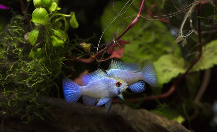 The maintenance and care of apistograms cannot be called too complicated. Nevertheless, it is better to take an aquarium of such a volume that approximately 20 liters of water fall on one pair of fish. It is important to remember that if the tank is too deep, the fish will go to the lower or middle level, but a small depth (from 10 to 15 centimeters) allows them to move around the entire tank. Water should have a temperature of 20 to 25 degrees Celsius, and the acidity level should not go beyond 5.5-7.5 pH. Optimum stiffness ranges from 10 to 12 dGH. In general, temperature fluctuations and changes in other indicators are not considered critical.