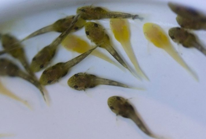 The ripening of eggs lasts about a week. All this time the male does not move away from the nest. After hatching the larvae, the father looks after them for another two days, until the little ones begin to feed on their own. After this, the father is returned to the general aquarium, and the fry are given special feeds.