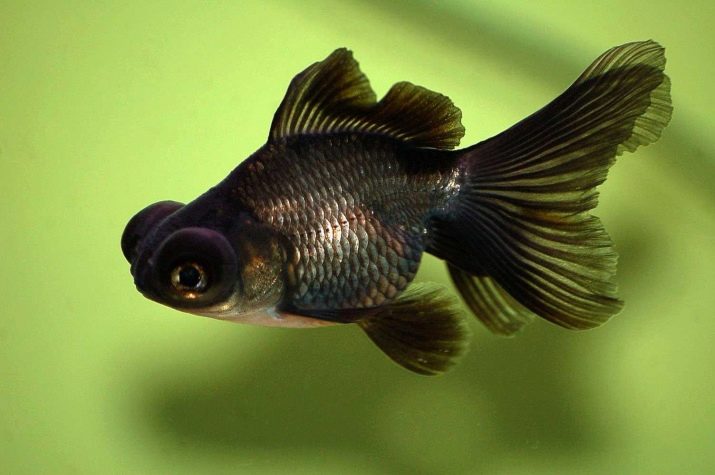 - Black telescope (black moor, black prince). This fish is famous for its unusual appearance. It is a kind of goldfish. It has a small but dense body, with an outstanding round belly and a "hump" on the back. The fins are veiled, elongated.