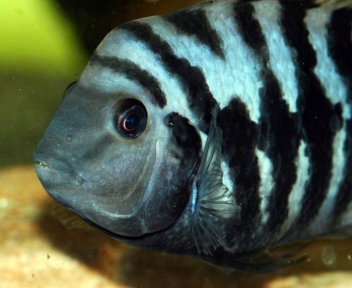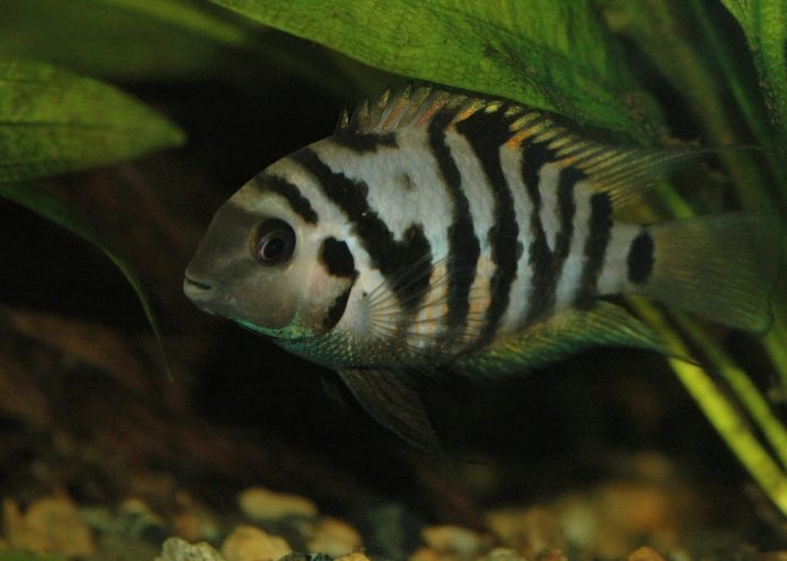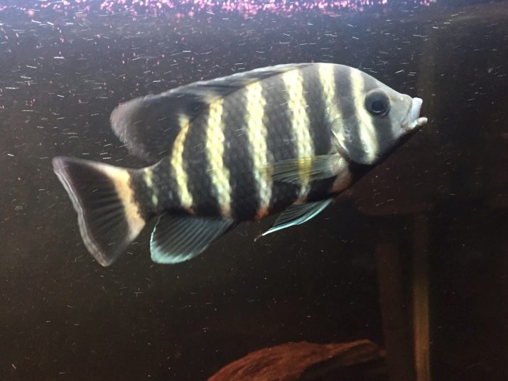 Keep cichlids in spacious aquariums, she must have her own corner, on which no one will encroach. Black-striped has a pugnacious character, and it is difficult to get along with other fish.