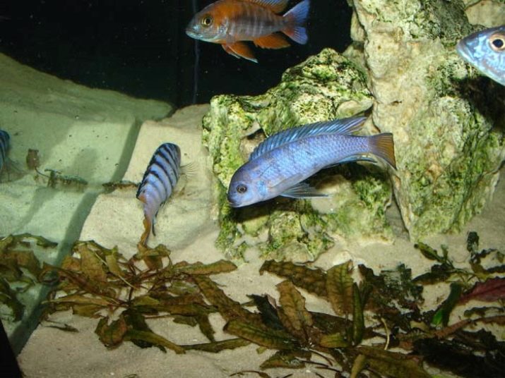 Blue zebra is compatible with chain catfish, lake cichlids. Malawi, Victoria, as well as with some types of cichlids of Lake. Tanganyika. They cannot be kept with peaceful species of fish, but can be combined with other Mbunami. In the aquarium should be stones, caves, sandy substrate.