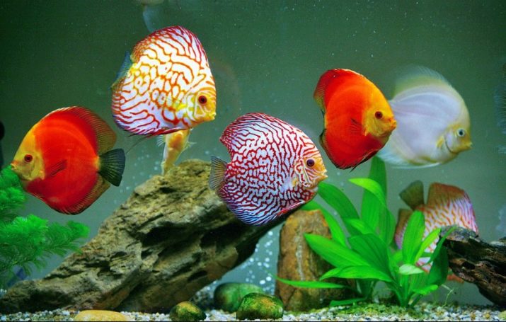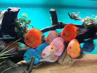 These cichlids are peaceful and not the most mobile. Usually they stay in a small group in the middle layers of water.Discuses prefer to stay in shady places, like diffuse lighting. They can be kept in a common aquarium, but it is better to choose a view tank.