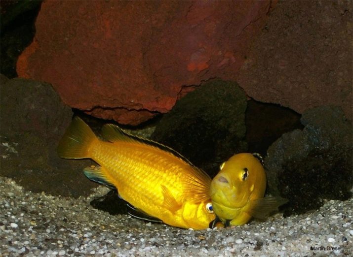Cichlids are great lovers of digging in the ground. Large-sized adults can uproot any aquarium vegetation, houses, caves, grottoes and other shelters without any problems. It is important to consider this feature of the behavior of cichlids, organizing comfortable conditions for them in the aquarium.