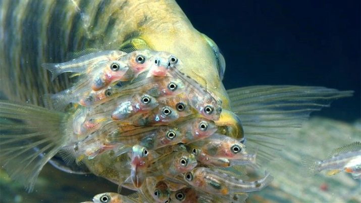 Usually, cichlids are monogamous. They choose for themselves only one partner, remain faithful to him throughout life. The fertility level in different species can vary significantly. For example, large cichlomas able to bring about 2000 eggs, and small fish that carry eggs in the mouth - no more than 100.