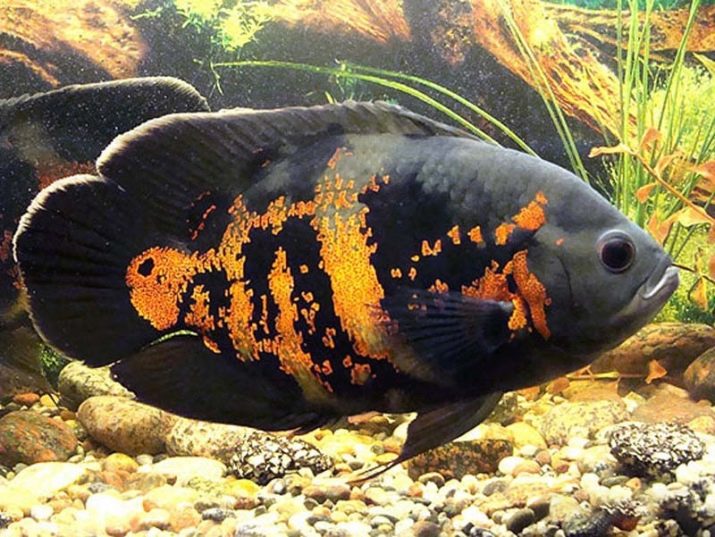 The color of these fish may vary. Most often, there are red decorative varieties of astronotus. The juveniles are only remotely similar to their parents and differ in coal-black color, diluted with snow-white stains and the presence of a star-like pattern throughout the body.