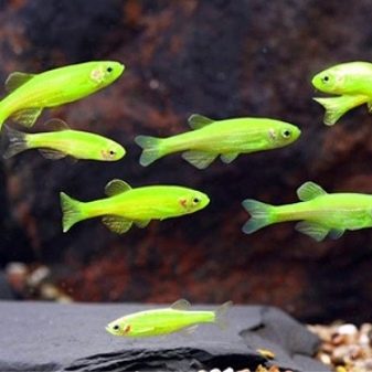 The zebrafish were the pioneers in this experiment. Owners of the coral genome - RFP - under UV irradiation emit neon red light, those who have introduced the jellyfish gene (GFP) - green. Individuals that both genomes “mixed in” glow yellow.