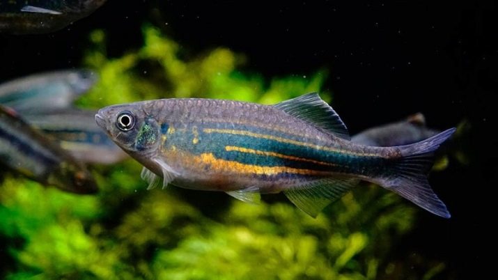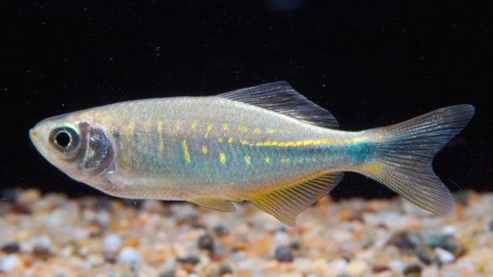 The story about varieties of zebrafish, which was previously mistakenly attributed to parsing, concludes and gave it the name golden parsing. Danio Gates is very small - up to 2 cm, so that he would not be "lost" among the larger species of fish, it is better to populate them in a nano-aquarium with a flock of 8-12 individuals. Appearance: narrow, thin body, large eyes, color - golden, a thin turquoise line passes from the tail to the middle of the carcass.