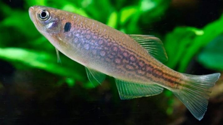 The name speaks for itself: a characteristic feature of a whiskered zebrafish is an elongated mustache hanging from the lower lip. The color of this fish is rather dull: a silver-pearl background, on which barely noticeable stripes and spots are visible. Near the gill cover there is a single dark spot of a round shape. The size of the mustachio zebrafish is from 6 to 13 cm.