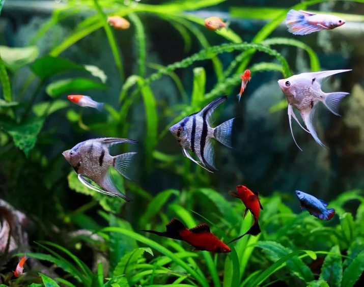 Angelfish feel great in small flocks. It is advisable to keep 4-6 individuals in one aquarium. As neighbors you need to choose a non-conflict inhabitants, with a calm character. They should also be the same size as scalars.