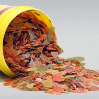 - Flakes - flakes floating on the surface. Red flakes are intended for predators, green ones are for herbivorous breeds, both types can be poured by omnivorous cichlids. Flakes are equally suitable for pets of all sizes.