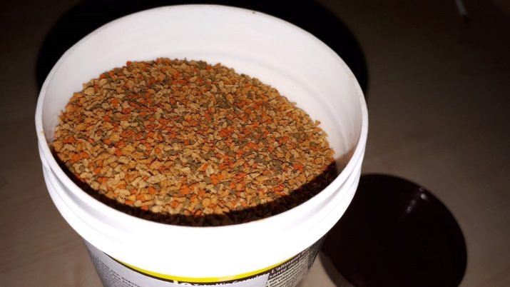 - Granules - are released separately for predatory (usually red), herbivorous (differ in green or green-brown) and omnivorous (red-brown pellets) fish.