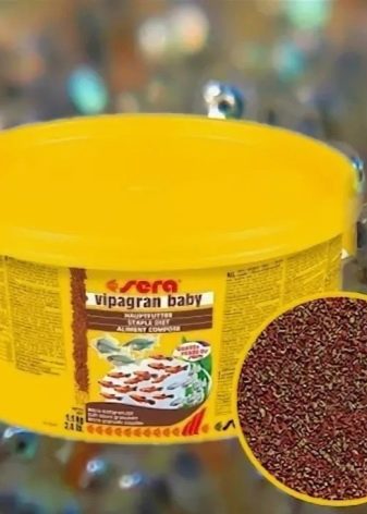 Feed line Sera vipa It is made according to all modern requirements from quality ingredients. It includes 5 products, 2 of which are most interesting to us. Sera vipan baby and sera vipagran baby designed specifically for very small and already grown fry. The feed is presented in the form of flakes, which are made from: