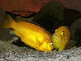 The process of breeding yellow lobidochrome is not very difficult and can occur in an aquarium even without human intervention. This is due to the fact that the survival rate of fry is very high. However, it is possible, as an option, to transplant the male and female into a special spawning tank, where subsequently there will be newborn fish. To stimulate the beginning of the spawning period, you should increase the temperature in the tank by several degrees. When the male and the female form a pair (which, incidentally, is usually very stable), they will create a depression in the ground, into which eggs will later be laid.