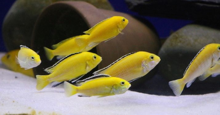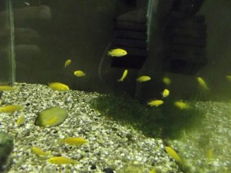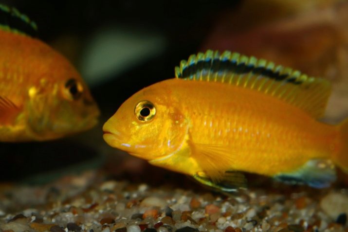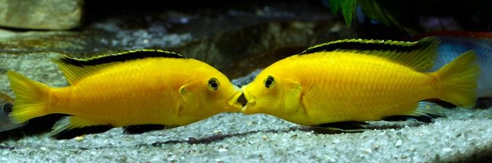 The difference in habitats affects both food requirements and the conditions of keeping these fish. Avoid settling other yellow individuals to lobidochromis, as hummingbirds can be aggressive, taking these creatures for males of their own species. Neighboring fish should not have such qualities as sluggishness, predatory habits, as well as too small a size. Examples of unsuccessful options are the following fish: